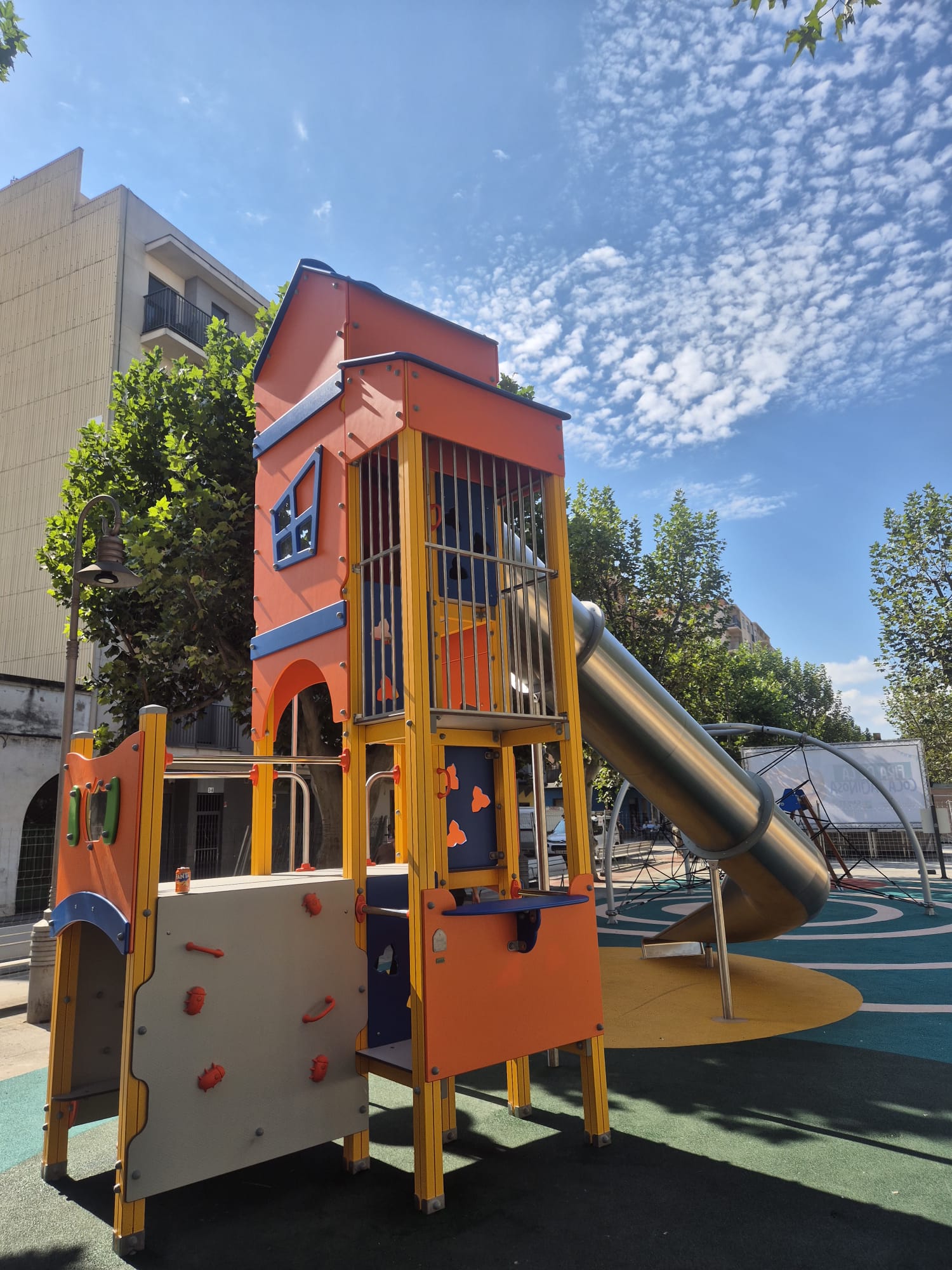 En Parques Troe hemos instalado esta zona de juegos infantiles de Galopin Playgrounds, y suelo de caucho continuo en Macastre.
